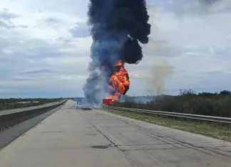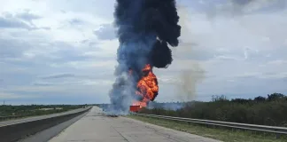 Intentó sobrepasar a un camión, chocó y su auto se incendió en Ruta 14