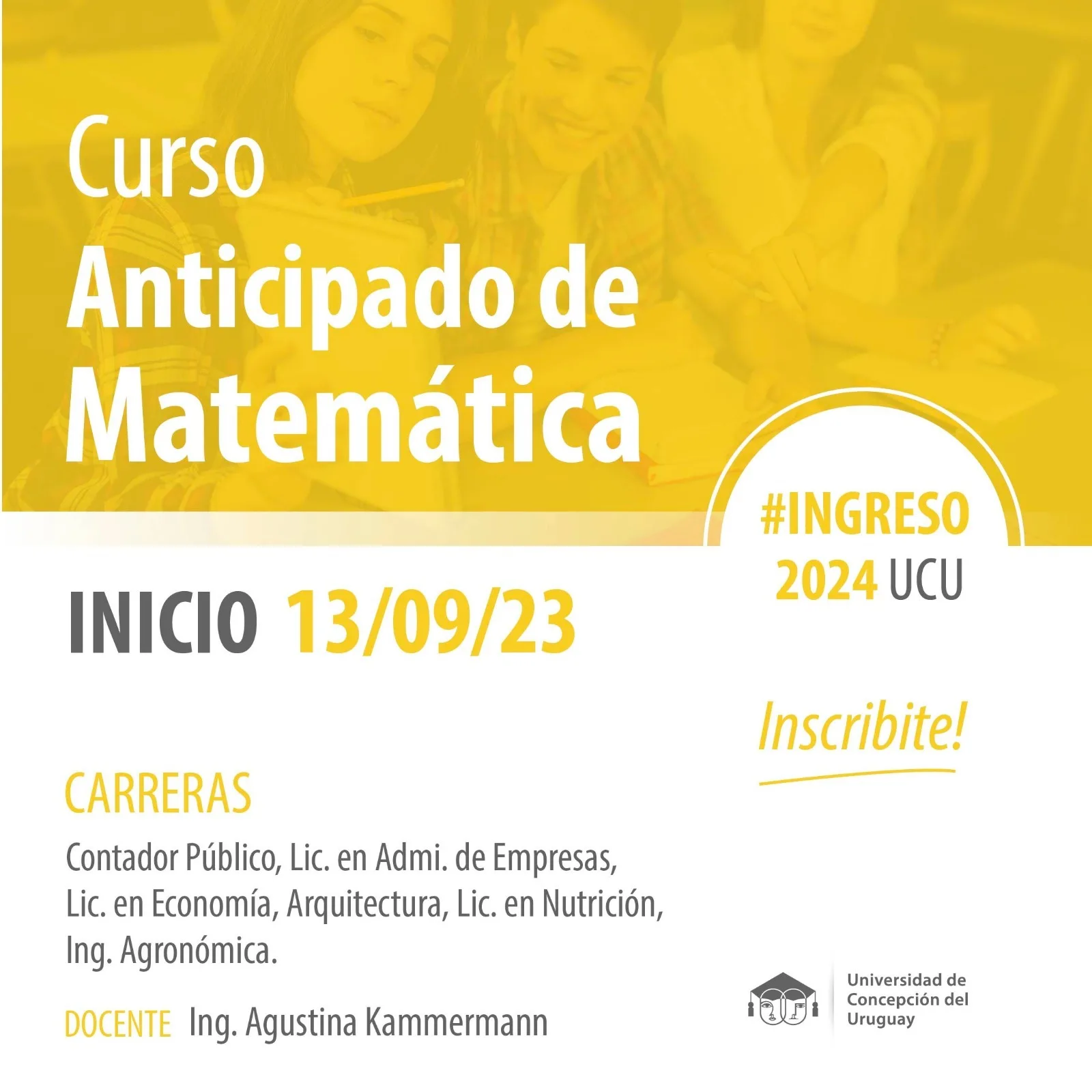 Como cada año la Universidad de Concepción del Uruguay dictará el Curso Anticipado de Matemática, con el objetivo de que el alumno ingresante repase, reconstruya y profundice de manera amena y contextualizada, contenidos matemáticos considerados básicos. La actividad comenzará el 13 de septiembre, de forma presencial y gratuita en 8 de Junio 522.