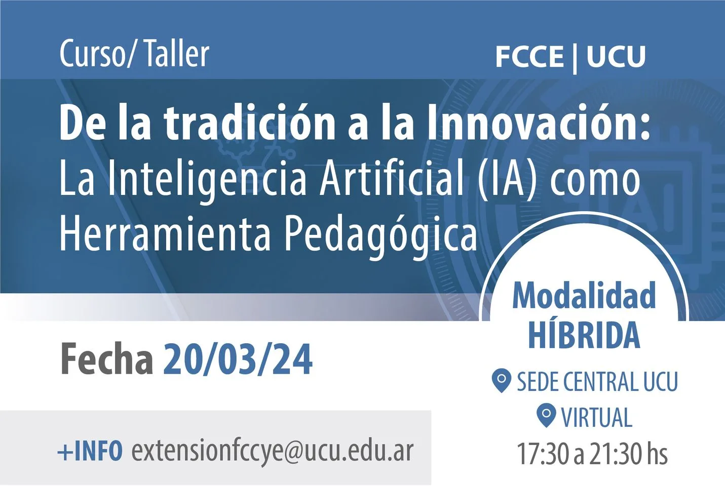 Desde la Facultad de Ciencias de la Comunicación y de la Educación de la Universidad de Concepción del Uruguay te invitan a participar este 20 de marzo del curso- taller “De la tradición a la innovación: La inteligencia artificial como herramienta pedagógica” , dictado por la Dr. Teresa Lao. Está destinado a docentes y no docentes de todos los niveles educativos.