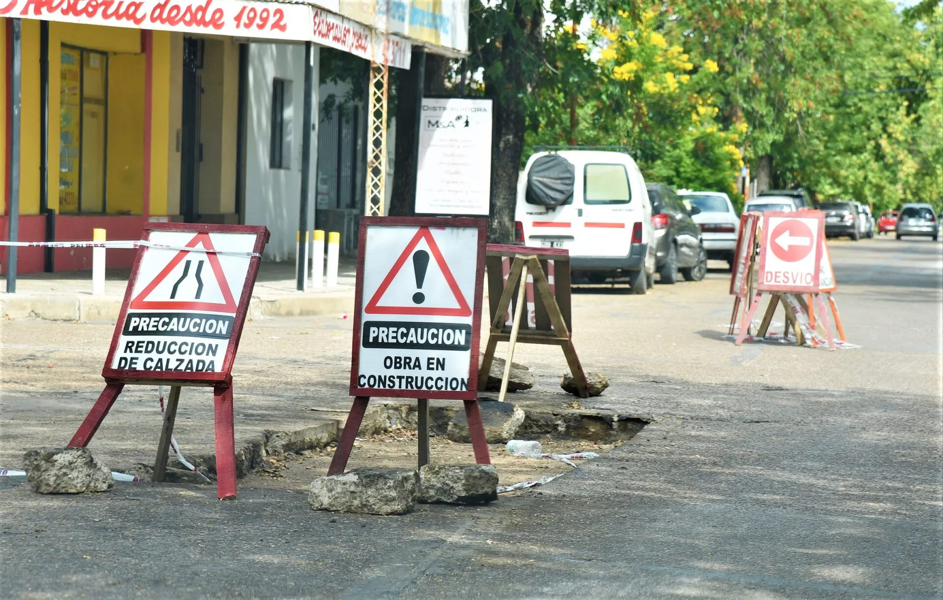 Paralelamente, los 30 bacheos con hormigón se realizaron en Urquiza y Mitre, Ugarteche y Mitre, Ereño 334 y 353, Sarmiento y 23 del Oeste Sur, Erausquin y Mitre, Terminal de Ómnibus, Clark 292, Tibiletti 172, Galarza y Leguizamón, Galarza y 14 de Julio, Galarza 1029 y 1525, cinco puntos de calle Sarmiento, Ereño y Montoneras, 9 de Julio 583, Almafuerte y España, tres puntos de Juan Perón, Artigas 597 y 530.