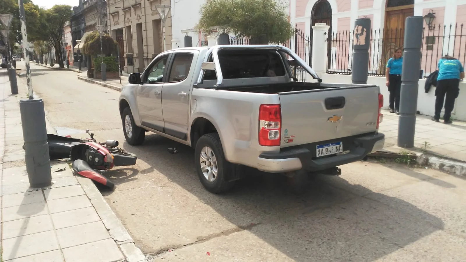 A las 11:30, Sección Judiciales inicia actuaciones policiales a raíz de accidente de tránsito ocurrido en calle San Martín entre Centenario y Alem, lugar donde se produjo una colisión entre una motocicleta marca Gilera modelo Smash 110cc., conducida por un masculino de 21 años de edad, y una camioneta marca Chevrolet, modelo S10, siendo su conductora una femenina de 25 años de edad; el conductor de la motocicleta, fue trasladado por personal de Emergencias Médicas al Hospital San Blas, fue examinado por el médico policial de turno y resultó con lesiones de carácter graves (fractura de tobillo). Intervino División Criminalística y personal de Tránsito Municipal quienes retuvieron el motovehículo por falta de documentación. Se informó al Fiscal de Turno.