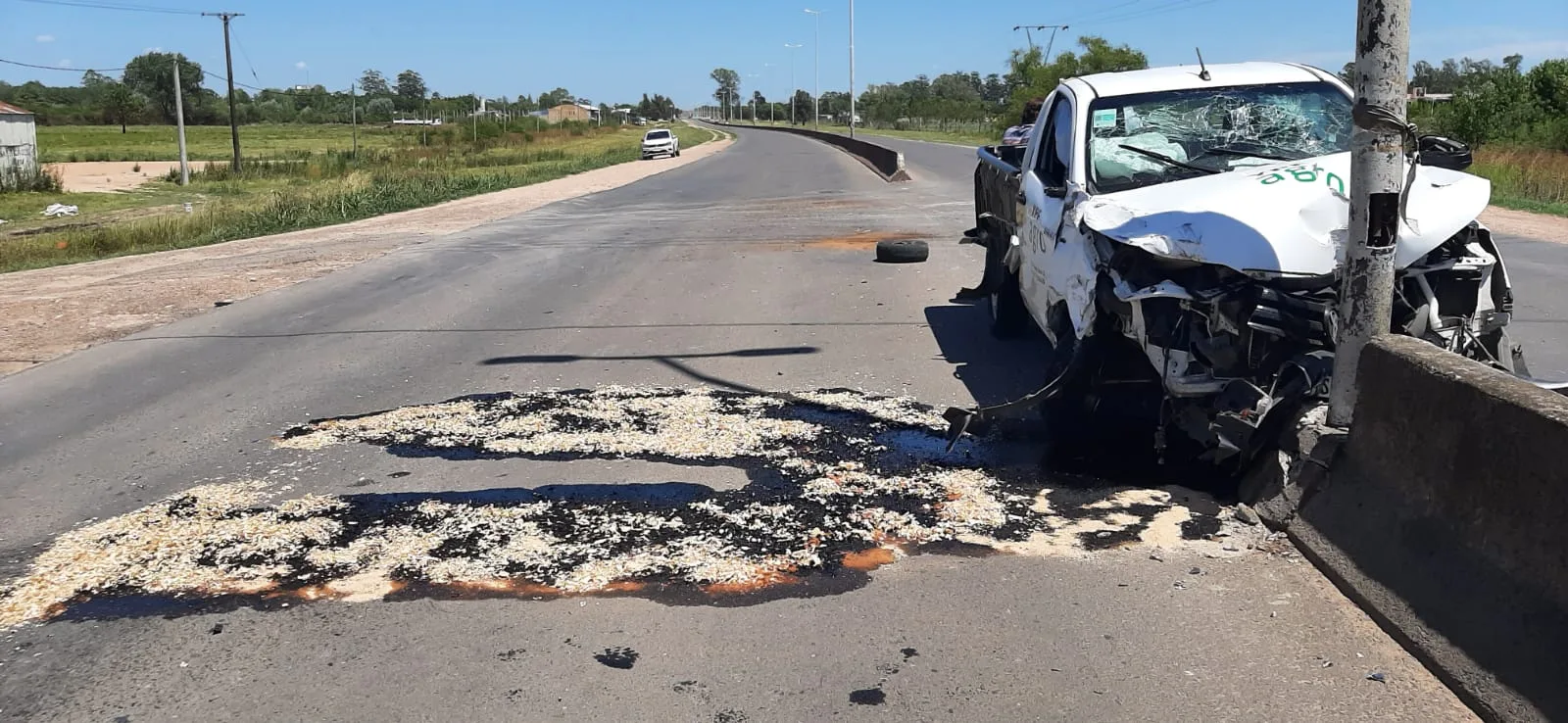 Por circunstancias que se trataran de establecer, un camión Mercedes Benz 1114 de la localidad de San Justo y una camioneta Marca Toyota Hilux cabina simple, conducida por un masculino de 32 años de apellido Girardi, que circulaban de oeste-este, ambos vehículos rozaron, produciéndose el fuerte impacto del menor porte (no se descarta un encierro por parte del camión).