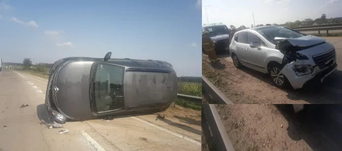 En la mañana de hoy, Personal de Comisaría Ubajay, interviene en un accidente de tránsito, ocurrido en el km 204,8 de la Autovía, protagonizado por un automóvil marca Citroën modelo Cactus, conducido por un masculino de 49 años de edad, acompañado por su esposa de 52 años de edad y su hija menor y un vehículo marca Peugeot modelo 3008 guiado por un ciudadano de 52 años de edad, a raíz de dicha colisión el Citroën perdió la estabilidad y volcó. Se trasladaron a las femeninas al Hospital de Colón en donde resultaron con Lesiones Leves. Intervención a personal de criminalística, Bombero de Ubajay