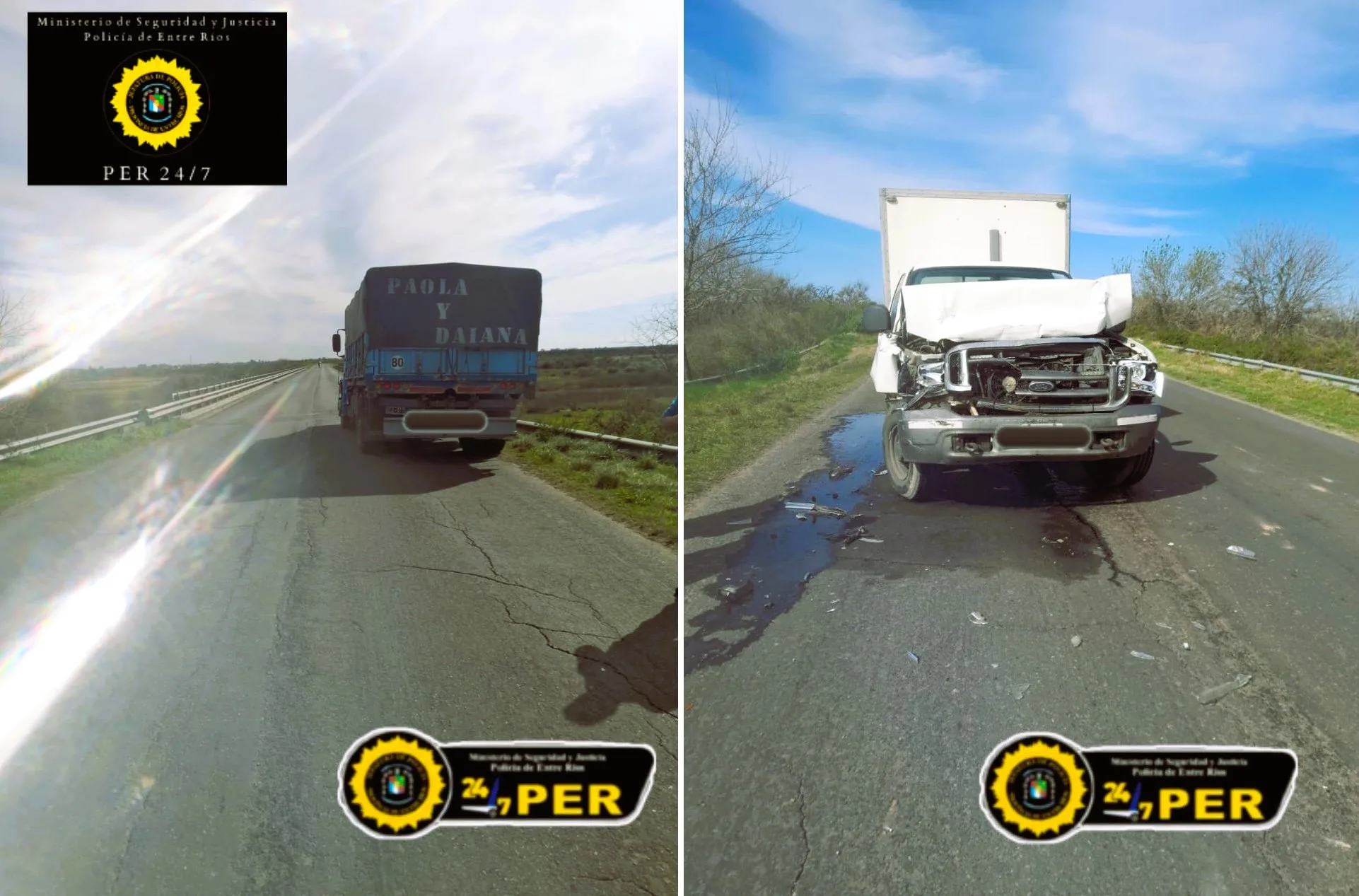 En horas de la tarde de ayer, personal del Comando Radioeléctrico fue comisionado a la Ruta N° 39, en cercanías al Destacamento Río Gualeguay, tras recibir el aviso de un accidente de tránsito. Al llegar al lugar, las autoridades confirmaron el siniestro, en el que se vieron involucrados dos vehículos: un camión marca Scania 113, modelo 96, y una camioneta marca Ford F100, ambos conducidos por hombres.
