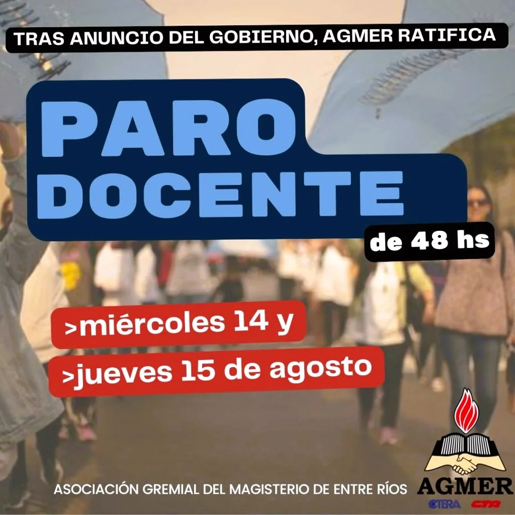 A horas del comienzo de las próximas 48 hs de paro resueltas en congreso el pasado 06 de agosto, el gobierno de la provincia llamó a conferencia de prensa para anunciar que impondrá por decreto la propuesta que la docencia entrerriana rechazó por unanimidad. Con esta decisión ignora la demanda elaborada por cada asamblea en todo el territorio provincial.
