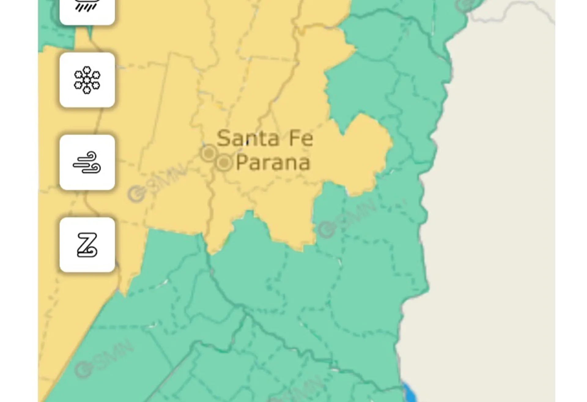 El área será afectada por tormentas de variada intensidad, algunas localmente fuertes. Las mismas estarán acompañadas por frecuente actividad eléctrica, granizo, lluvias abundantes en cortos períodos y ráfagas intensas que pueden alcanzar los 75 km/h. Se prevén valores acumulados entre 40 y 80 mm, pudiendo ser superados de manera puntual.