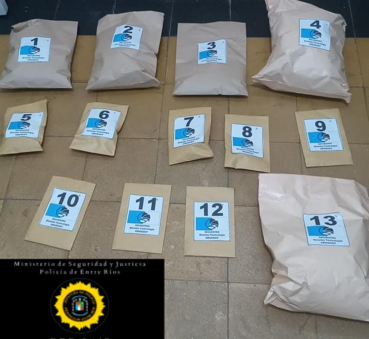 El allanamiento se efectuó en una finca situada en la calle 24 del Oeste, entre Alberdi y Sarmiento. En el lugar, se notificó de la medida judicial a una ciudadana de 31 años. Durante la requisa, los agentes lograron incautar diversos elementos: teléfonos celulares, un postnet de Mercado Pago, 870 gramos de cogollos de cannabis sativa, una amplia variedad de semillas de marihuana y una balanza de precisión. Para la realización de los reactivos pertinentes, se dio intervención a personal de la Delegación Toxicología de la Jefatura Departamental Uruguay.