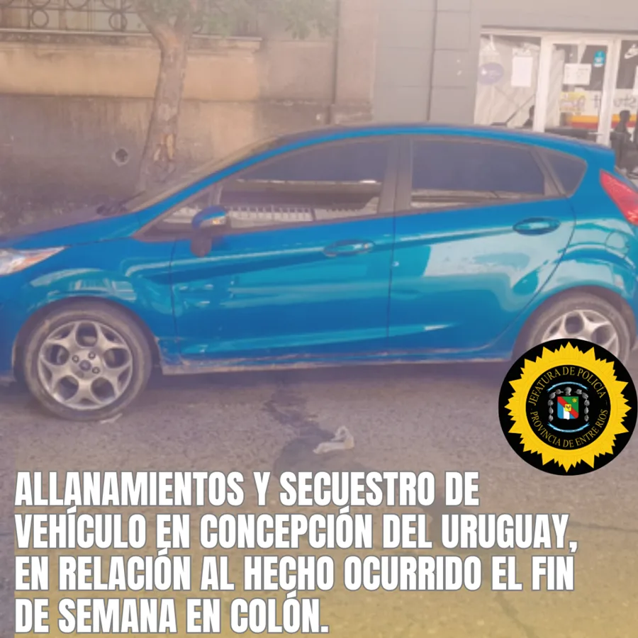 El allanamiento tuvo lugar en una vivienda ubicada sobre la calle 3 de Febrero de Concepción del Uruguay, donde se procedió a identificar a una mujer de 35 años que se encontraba en el lugar. El vehículo fue encontrado estacionado en la propiedad y, tras las verificaciones iniciales, fue secuestrado como parte de la investigación en curso.