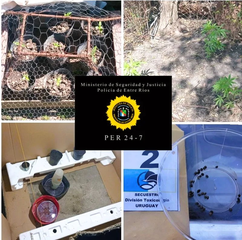 Durante el allanamiento, se descubrió un indoor de cultivo casero, así como veintitrés plantines de cannabis sativa y cuarenta y una semillas de la misma especie. La delegación de Toxicología intervino en el procedimiento, realizando pruebas orientativas que confirmaron la presencia de cannabis sativa en la sustancia hallada.