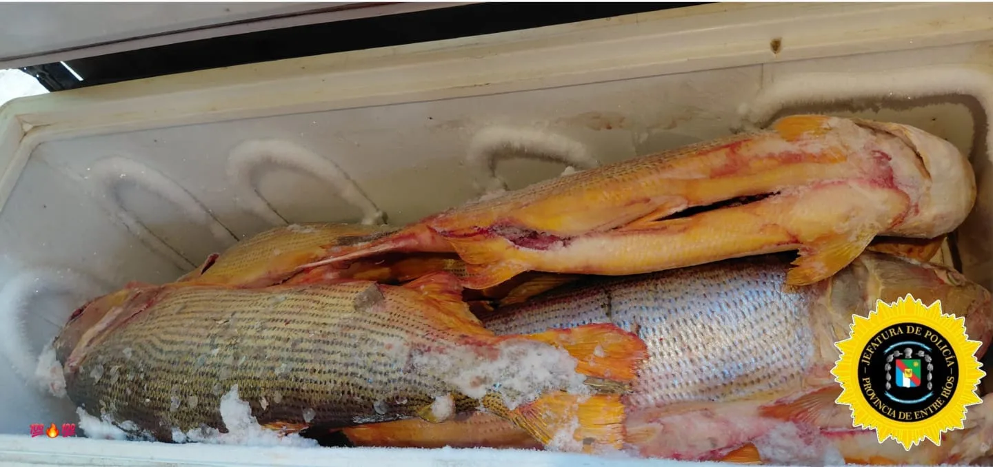 En el marco de una investigación por infracción a la Ley Provincial N° 4892 —que regula la pesca en Entre Ríos— y a la Ley N° 11174, que protege al dorado y prohíbe su pesca y comercialización, personal de la Brigada Abigeato Villaguay, dependiente de la Dirección General de Prevención de Delitos Rurales, llevó a cabo un allanamiento y requisa domiciliaria en la ciudad de Concordia, donde se constató el acopio ilegal de grandes cantidades de pescado.