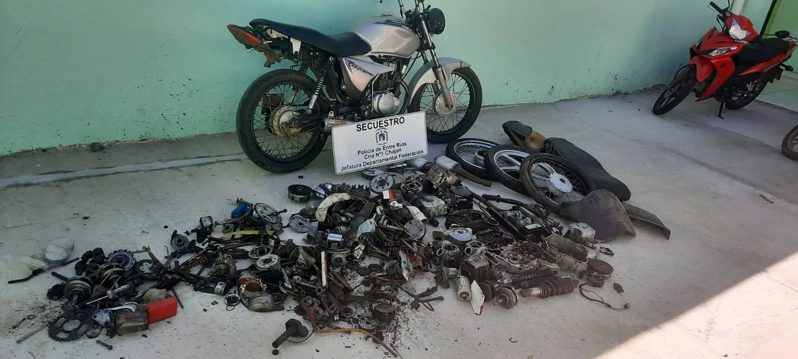 En el día de ayer, personal policial de la Brigada de Investigaciones de Comisaria Chajarí, en relación a denuncias radicadas “Por Supuesto Delito De Robo, de fecha 06/03/23 y “Por Supuesto Delito De Hurto, de fecha 09/03/23, en perjuicio del Depósito Municipal de Motos y Autos retenidos por las diferentes infracciones de tránsito, ubicado en calle Concordia casi Lombardía de esta ciudad, y en virtud de diversas tareas investigativas procedió al secuestro de una motocicleta marca Honda, de 150cc, pintada de color gris, en regular estado; diferentes motopartes como ser cilindros de motos de cilindradas (110, 125 y 150), carburadores de diferentes medidas, cadenas, coronas y piñones, plásticos (los que se hallaban ocultos en la vegetación en zona rural de Colonia San Ramón). Asimismo se logró identificar a una persona mayor de edad con domicilio en esta ciudad, (sindicado como autor de los hechos) en cuyo domicilio se procedió al formal secuestro de 03 ruedas de moto completas rodado 17, a rayos, dos asientos de moto en regular estado, y diferentes motopartes como ser caño de escapes, amortiguadores, carburadores de diferentes medidas, cilindros, tapas de motor de diferentes marcas (Brava, Guerrero, Motomel), baterías, y elementos varios a especificar por el mecánico policial de motos, todo correspondientes a motocicletas de distintas cilindradas y marcas, concordantes con lo denunciado. Dichos elementos secuestrados fueron puestos a Disposición de la Fiscalía de la ciudad de Chajarí.