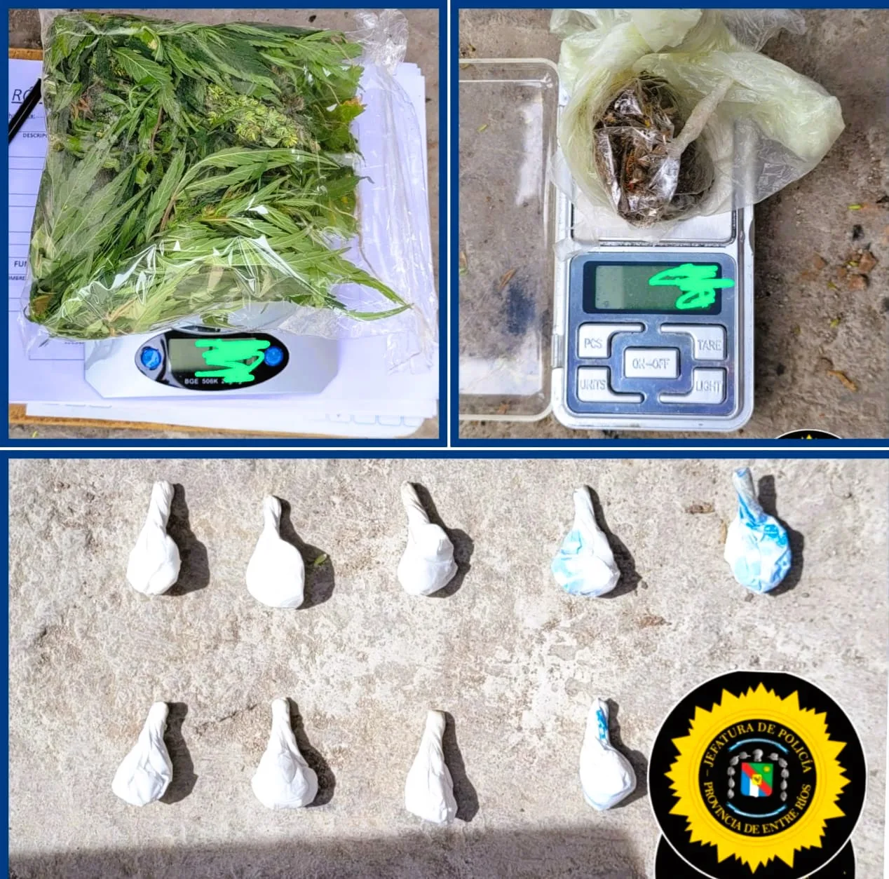 La intervención del personal de la División Toxicología permitió el secuestro de varias plantas de cannabis sativa, así como diversos envoltorios de nylon que contenían semillas de cannabis y otros que albergaban clorhidrato de cocaína.
