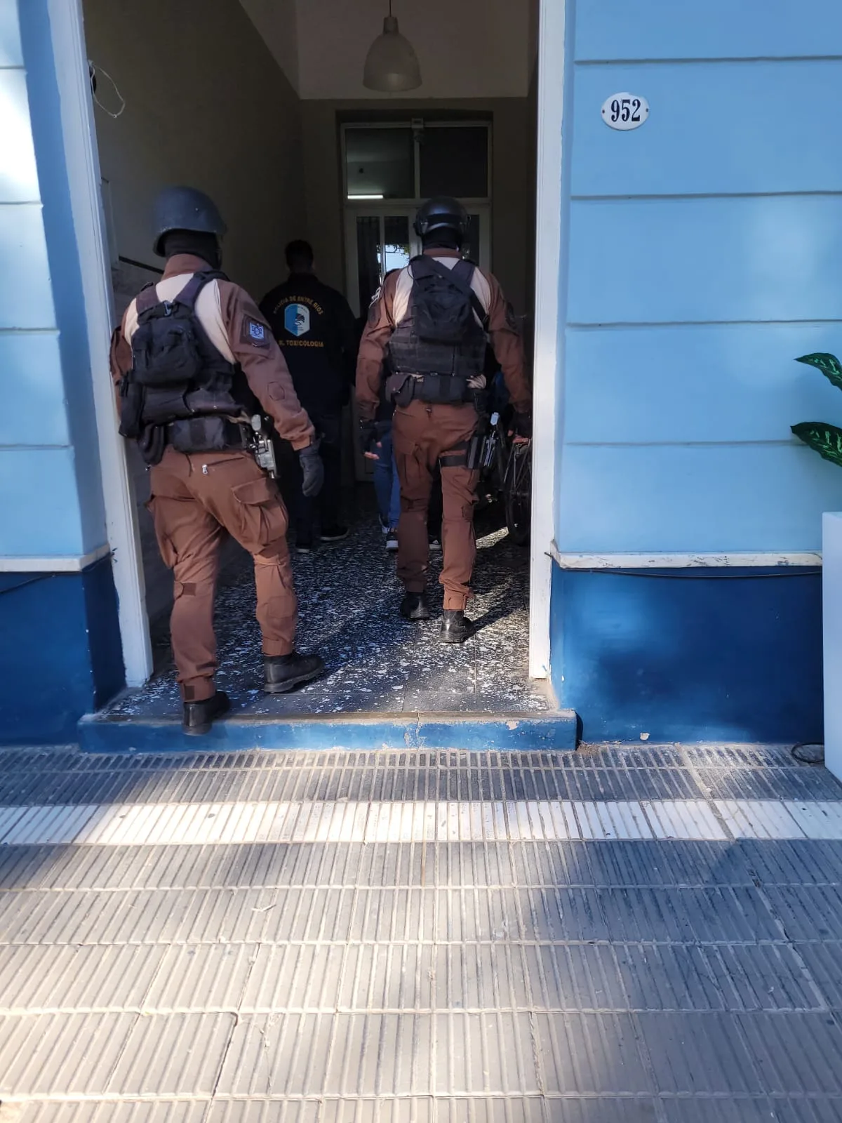 En la mañana del día miércoles, muy temprano, personal de la División Toxicología de esta Jefatura Departamental Nogoyá, con colaboración funcional de sus pares de las Jefaturas Departamentales Diamante, Rosario del Tala y Victoria junto a sus respectivos grupos de elite, en cumplimiento de mandato judicial mediante Oficio N.º 573 proveniente del Juzgado de Transición y Garantías de esta ciudad de Nogoyá, a cargo del Dr. Acosta Gustavo.