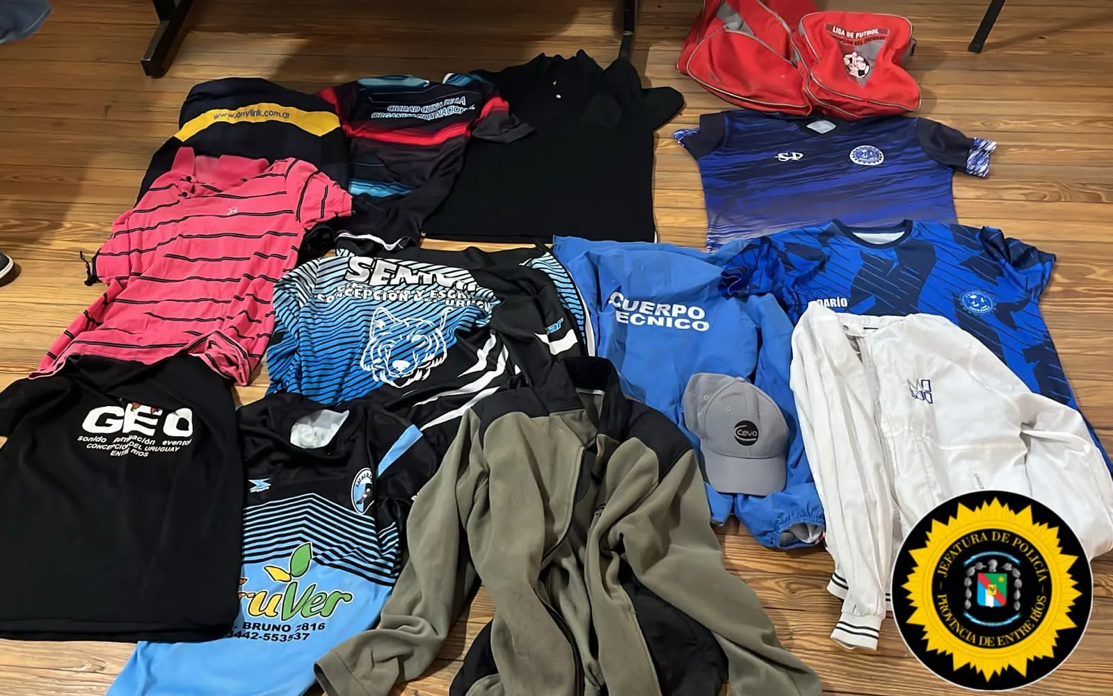 Además, la División de Investigaciones realizó otro operativo en la intersección de Calle Belgrano y Maestro Alberdino. Allí se localizó una bolsa plástica que contenía un bolso de tela roja con la inscripción «Liga de Fútbol Concepción del Uruguay». En su interior se hallaron prendas de vestir, incluyendo ropa deportiva del Club Engranaje. Ante este descubrimiento, los objetos fueron secuestrados y la fiscalía fue notificada para continuar con las acciones pertinentes.