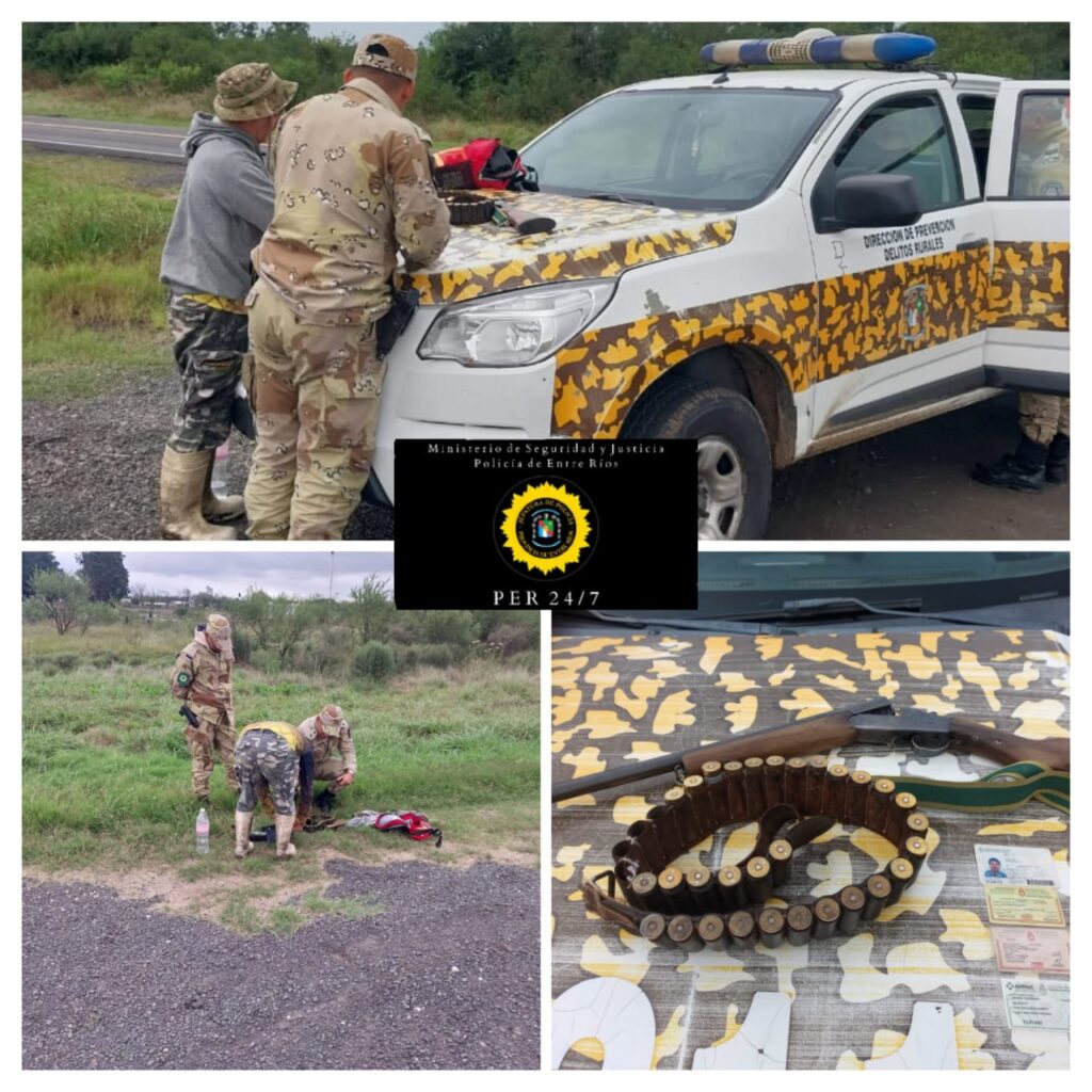 Por otro lado, en un control realizado por personal de Brigada La Paz sobre la Ruta Nacional N° 12, se constató que un ciudadano transportaba carne de jabalí sin los permisos adecuados, mientras que otro individuo salía de un campo con un arma de fuego sin la documentación requerida, lo que llevó al secuestro del arma.
