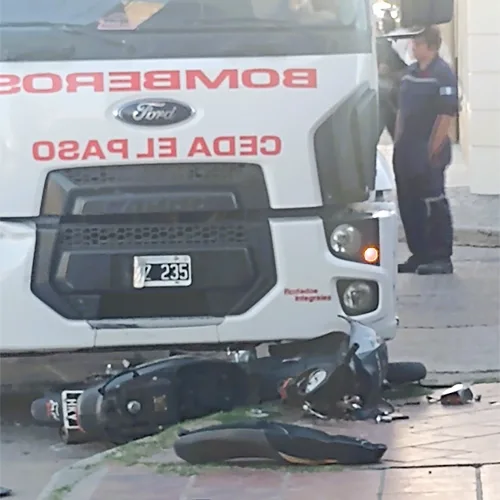El informe policial enviado a este medio, que siendo las 18hs del día lunes debieron asistir a un siniestro vial en calles Intendente Giménez y Alem, al llegar al lugar se encuentran con un coche bomba marca Ford Cargo, perteneciente a Bomberos Voluntarios de esta ciudad, que transitaba por Alem de Oeste a Este y por causas que se tratan de establecer, colisiona con una motocicleta Gilera Smash en la cual iba una pareja, ambos de 22 años de edad.
