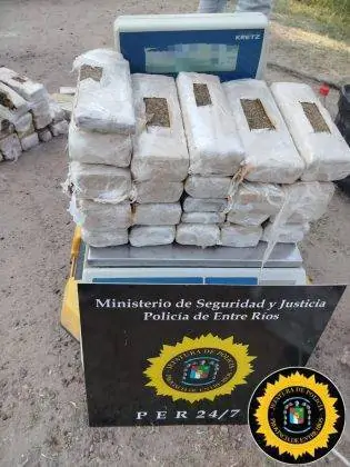Durante la revisión, se descubrió un envoltorio compacto oculto en un doble fondo del vehículo, lo que motivó la intervención de la División Toxicología, que contactó al Juzgado Federal de Concordia. Como resultado, se llevó a cabo un procedimiento que arrojó un saldo positivo: se hallaron 108 ladrillos de marihuana con un peso total de 44 kilos con 384 gramos, además de teléfonos móviles, dinero en efectivo y documentación relevante.