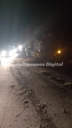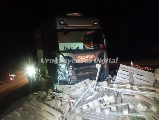 Según informaron oficiales a Uruguayenses Digital, uno de los rodados involucrados era un camión Scania G310 con semirremolque cargado con tarimas de madera, que circulaba desde Liebig con destino a Burzaco (Buenos Aires).