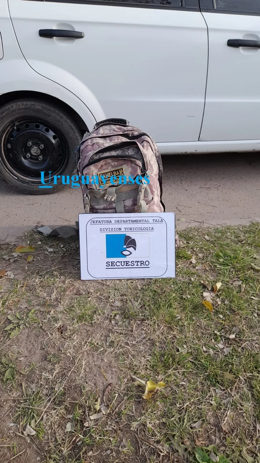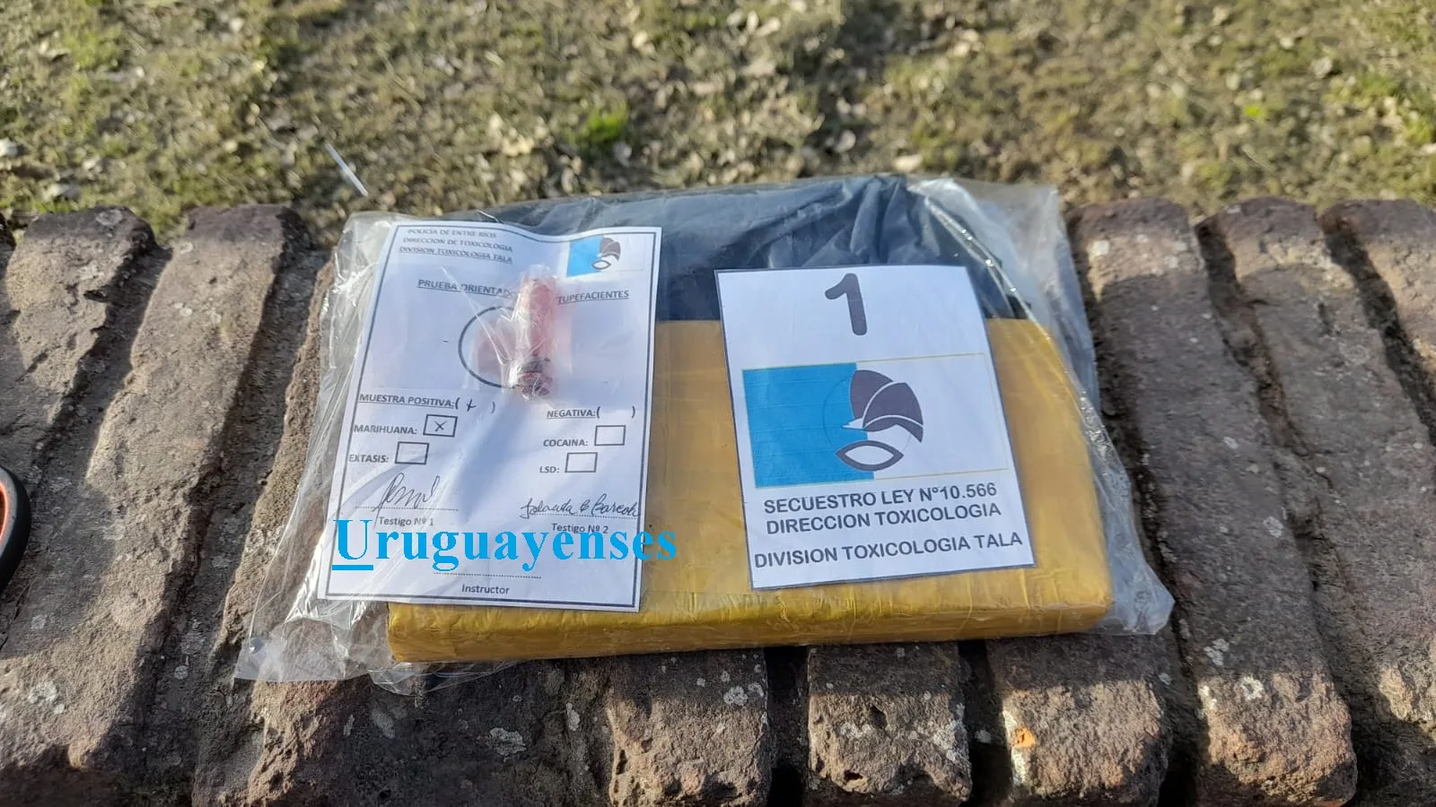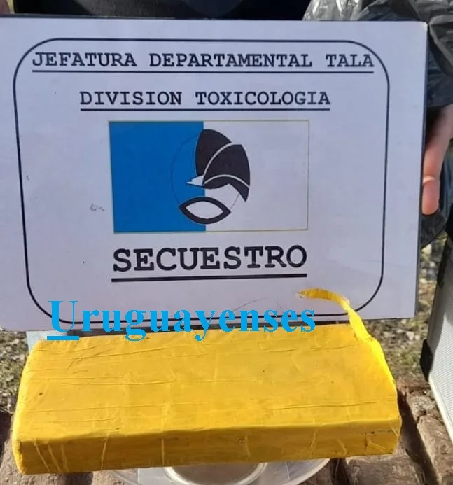 Hoy en horas de la tarde, personal de la División de Toxicología de esta Jefatura Departamental Tala, observan arribar a la terminal de ómnibus, ubicada en calle Urquiza y Bizotto, un colectivo de línea, del cual se observa descender a un masculino, el mismo permanece un tiempo en el playón de la terminal, caminando y mirando hacia los lados, denotándose una actitud nerviosa, para luego retirarse por calle Urquiza hacia el cardinal este, continuando con la actitud nerviosa, por tal motivo al ser interceptado por el personal policial, en calle Santa Fe, rápidamente saca un envoltorio del interior de la mochila, y lo arroja hacia el patio de una Escuela intentando darse a la fuga, siendo rápidamente aprehendido, el elemento arrojado al constarse se trataba de un envoltorio de nylon en forma de ladrillo, el que contenía en su interior material vegetal verde amarronado compacto, observando esta acción un ciudadano de 68 años, que ocasionalmente iba caminando; al ser identificado el aprehendido se estableció que se trataba de una persona de 40 años de edad, domiciliado en la ciudad de Paraná, al someterse una muestra de sustancia al test orientativo se estableció que era marihuana, con un peso cercano a los 800 gramos, al informarse a Ministerio Público Fiscal, dispuso el secuestro del elemento puesto a resguardo, como así también una mochila que esta persona poseía al momento de su aprehensión la que permanece a resguardo a la espera de oficio judicial para su requisa, disponiéndose además la detención del masculino en sede de Jefatura Departamental, quedando supeditado a la causa.
