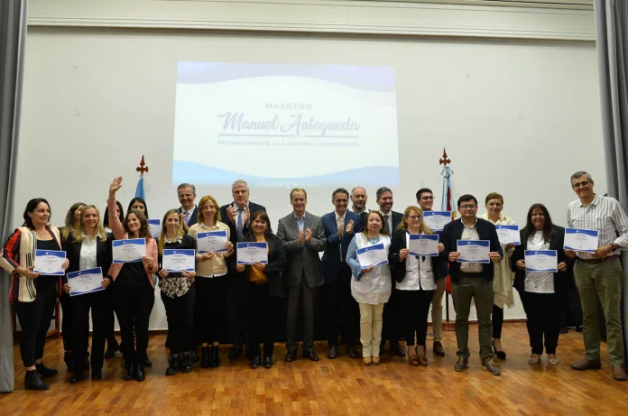 El premio Manuel Antequeda es un reconocimiento que otorga el CGE y se propone como una distinción al compromiso docente con la educación entrerriana. Se entrega a un docente de cada uno de los departamentos de Entre Ríos en representación de sus pares.