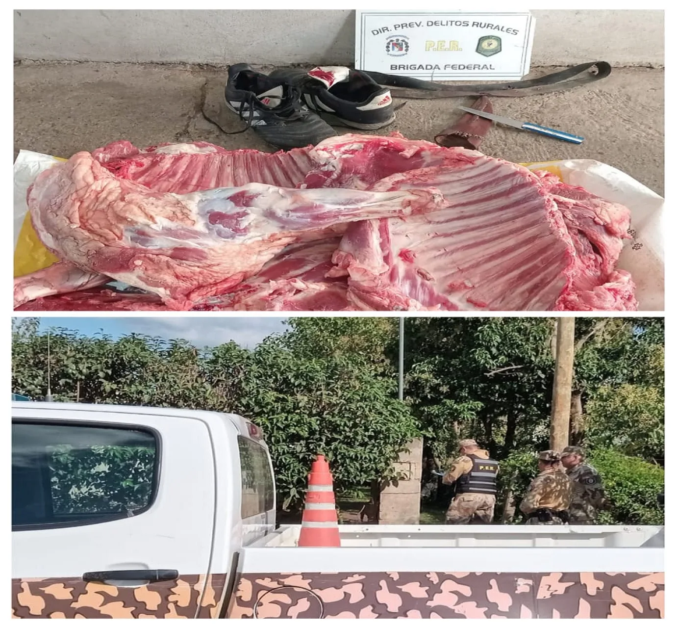 En la tarde de ayer, personal de Brigada de Federal de la Dirección Prevención de Delitos Rurales, ejecutó una Orden de Allanamiento y Registro Domiciliario en el Barrio Salto, que resultó con el secuestro de un par de zapatillas manchadas con sangre fresca, un pantalón también con sangre, un cuchillo y dos medias reses de carne ovina, en un total de 25 kg.