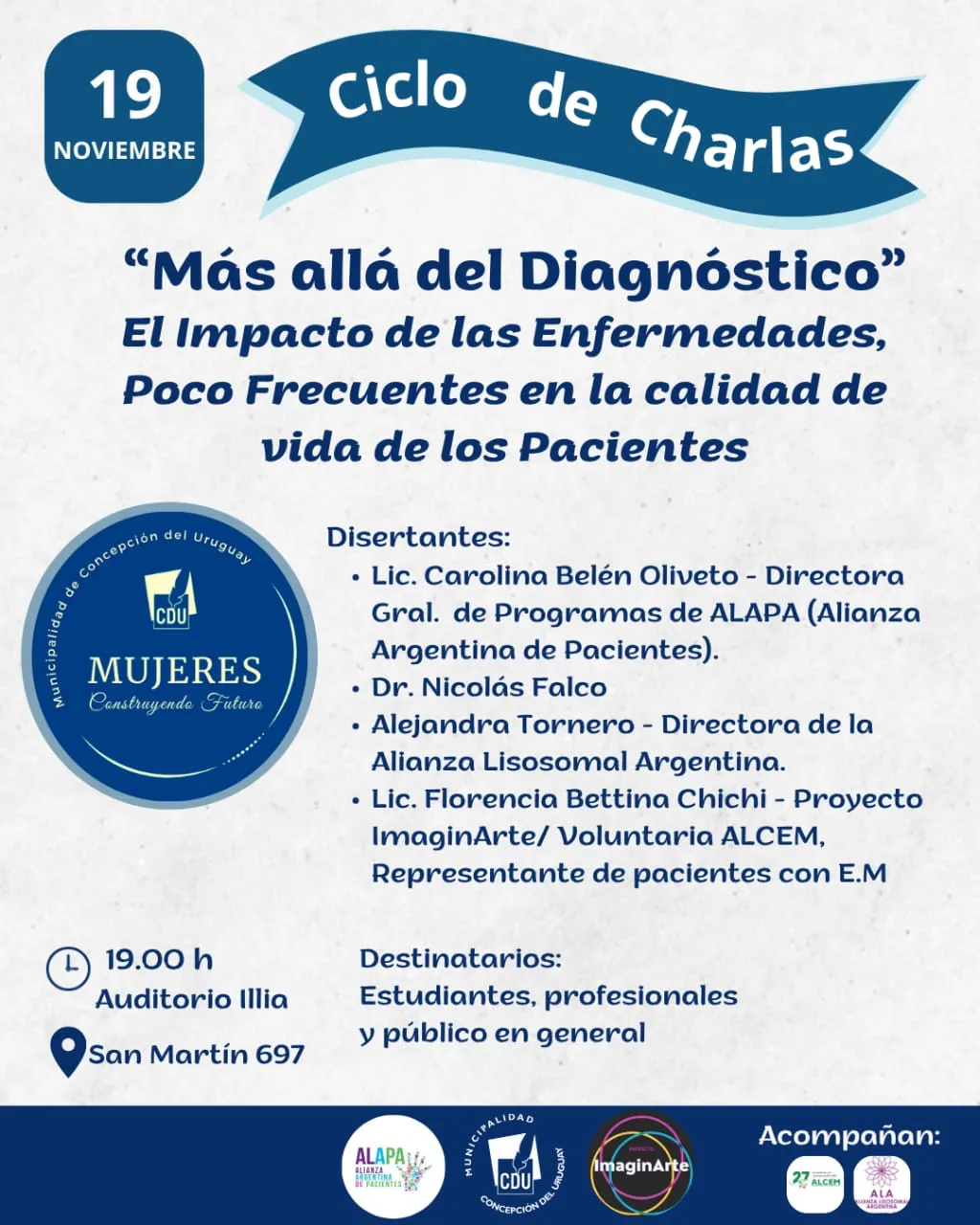 Además, forma parte del ciclo nacional “Conociendo las Enfermedades Poco Frecuentes por la Argentina”, impulsado por ALAPA (Alianza Argentina de Pacientes) y desarrollado en articulación con el Proyecto ImaginArte.