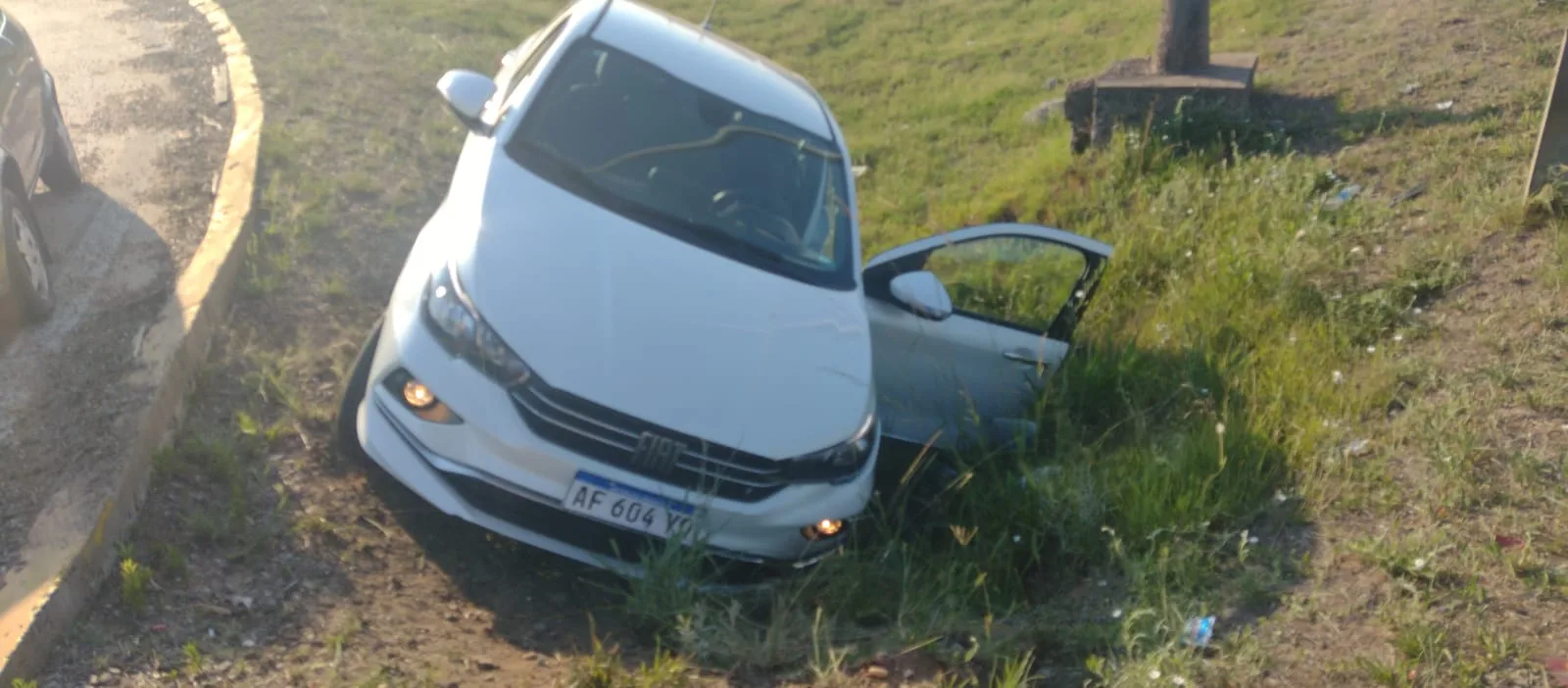 Un vecino de la ciudad de federación, salía de la ciudad y a llegar a la rotonda, no calculo bien la curva y termino en la banquina