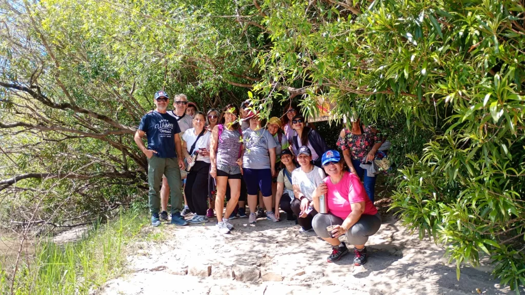 La primera parada del día fue la Reserva Natural Las Piedras, un espacio ideal para quienes disfrutan del contacto con la naturaleza. Allí, los caminantes realizaron una recorrida entre senderos, compartieron una mateada y aprovecharon el entorno para observar la flora, las aves y la fauna autóctona, además de relajarse junto al arroyo que atraviesa el lugar.