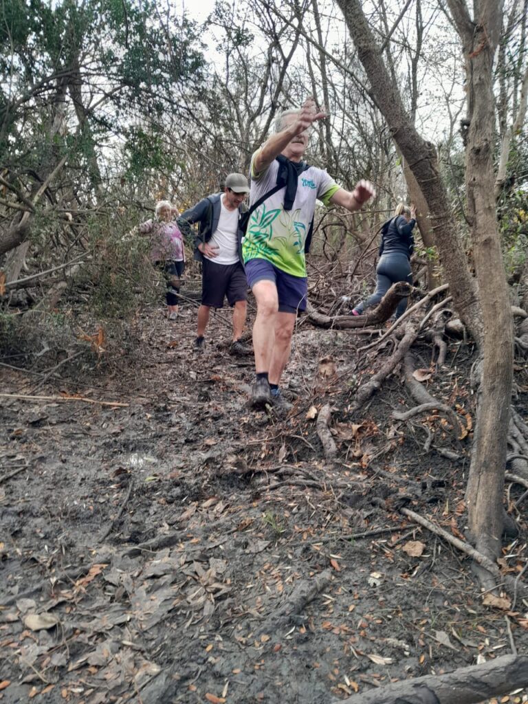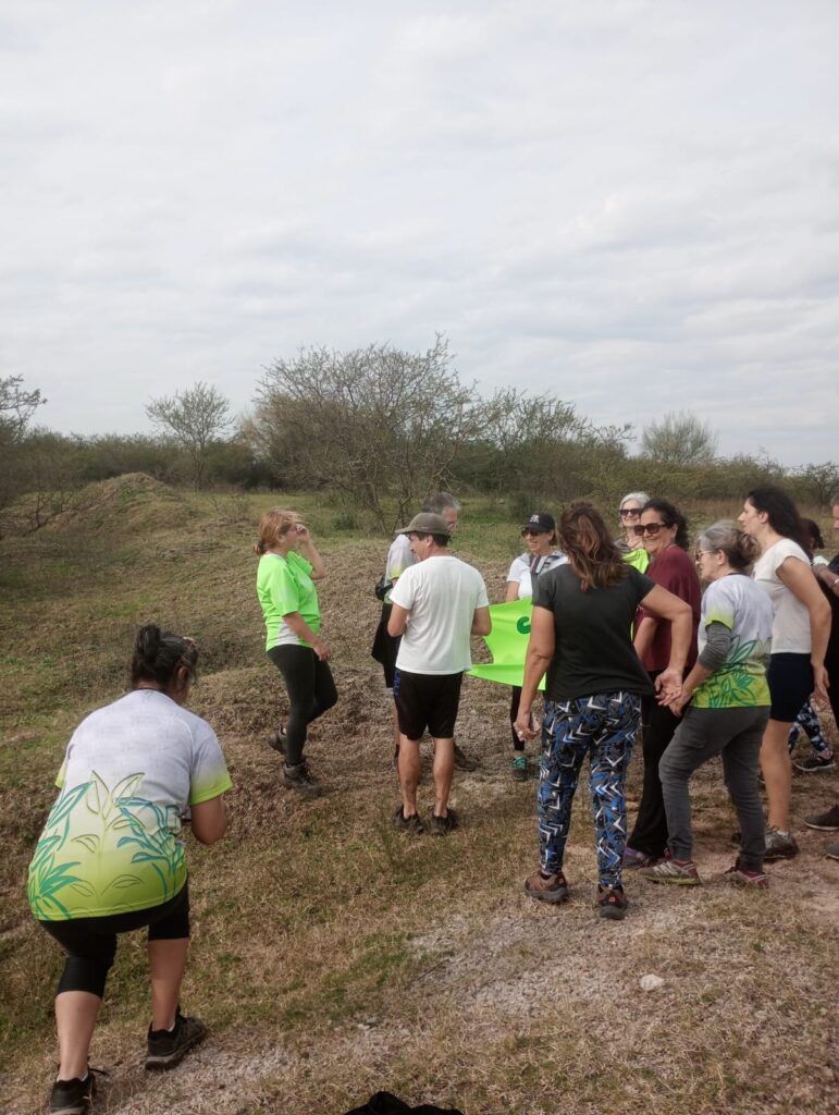 El recorrido por el campo fue una verdadera experiencia en contacto con la naturaleza, enfrentando desafíos como barro, agua y senderos agrestes. Durante la caminata, los participantes tuvieron la oportunidad de observar aves, así como vegetación autóctona e invasora, todo en un ambiente de risas y diversión.