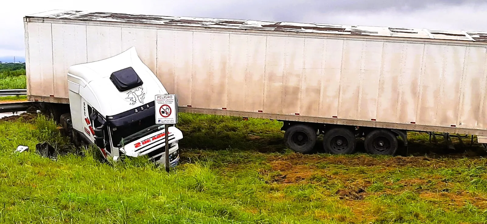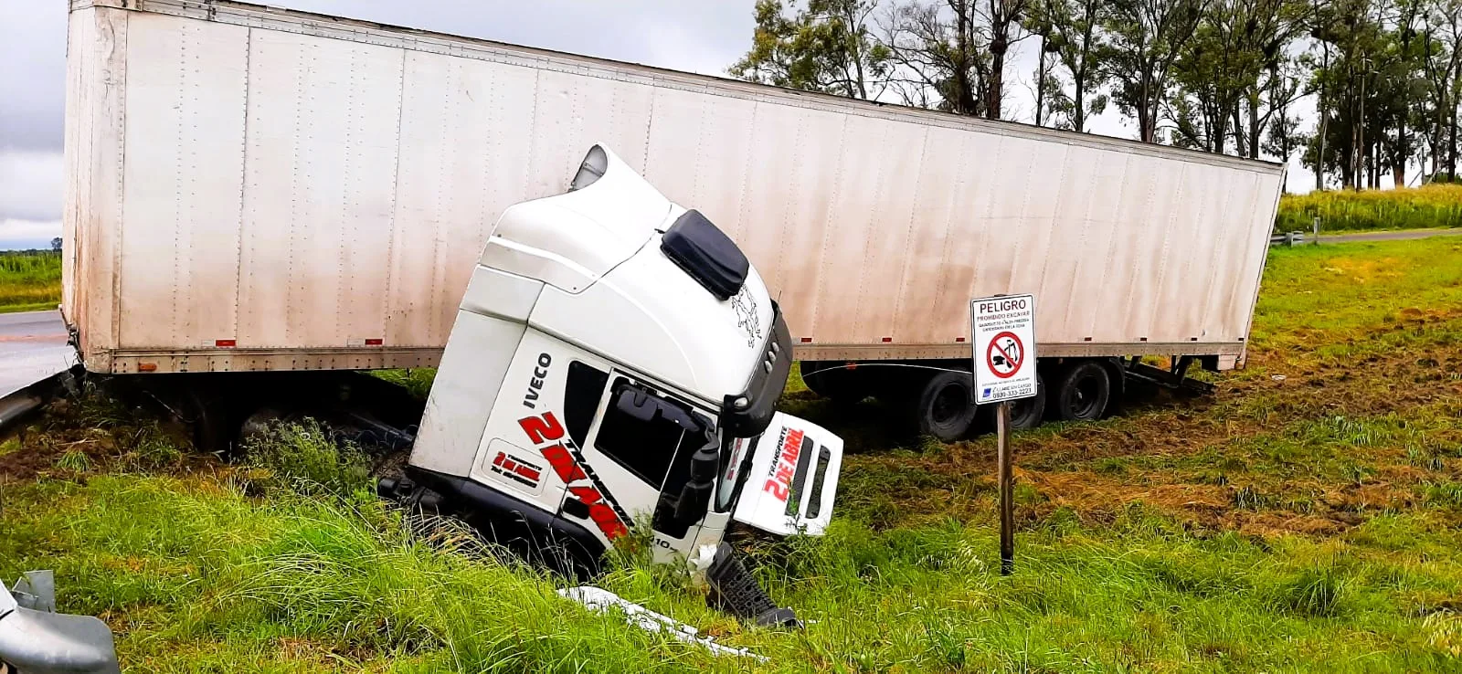 En la mañana de hoy, alrededor de las 8:00 hs, un camión con caja térmica que circulaba en dirección de Sur a Norte por la Ruta 14, sufrió un despiste a la altura del km 134, frente a la Escuela N° 102 Paula Albarracín de Sarmiento, en Concepción del Uruguay. El vehículo terminó fuera de la calzada, sobre el cantero central del puente peatonal, luego de que el conductor se encontrara con un espejo de agua al pasar el puente, lo que provocó que el camión perdiera estabilidad.