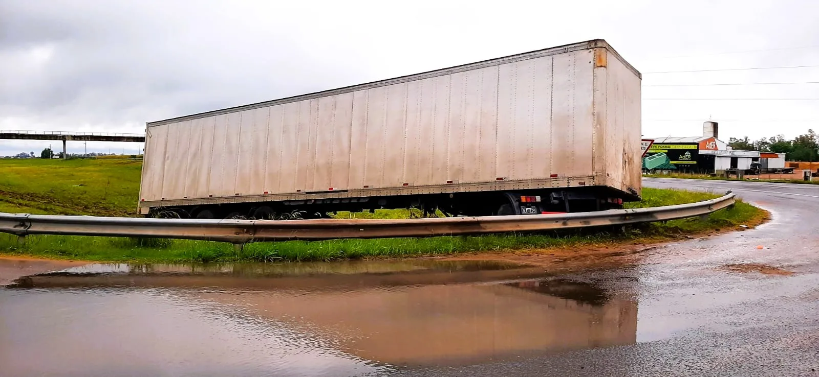 Según el testimonio del chofer, el agua acumulada en la ruta fue el factor que desestabilizó el pesado camión, haciendo que terminara fuera de su trayectoria. Afortunadamente, el conductor salió ileso del accidente, sin sufrir lesiones.
