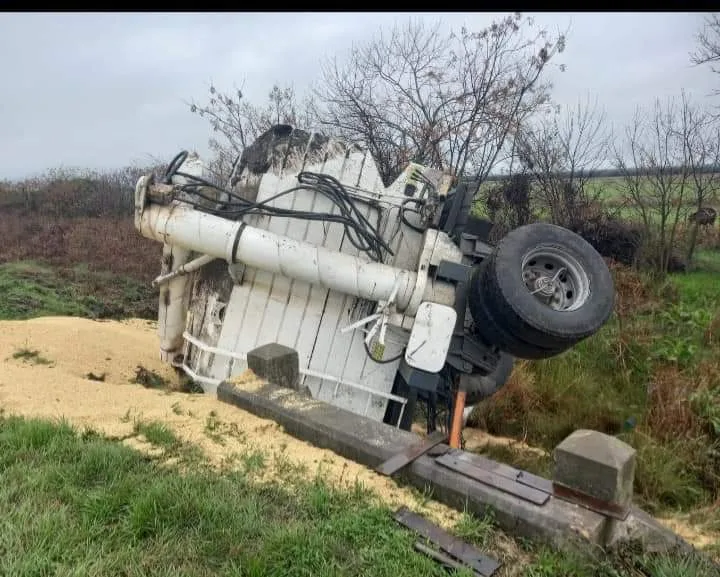 En la fecha alrededor de las 11:30 horas, se produce un Accidente Tránsito sobre Ruta Nac. 12.Km 561., donde un camión de la Empresa Indavisa, conducido por un masculino de 40 años de edad, que circulaba de Sur a Norte transportando granos por razones que se desconocen, se desprende el acoplado cargado con alimentos balanceado para pollo, volcando sobre la banquina lado izquierdo de la ruta. No existen personas lesionadas ni tampoco el acoplado volcado obstaculiza la cinta asfáltica.