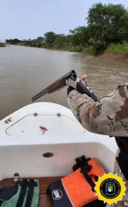 Secuestran cinco armas, una embarcación y detienen a dos hombres por abigeato en islas del departamento Diamante