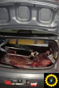 Desbaratan robo de ganado: cayó un joven con media res en el baúl de su auto