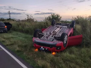 Intentó esquivar un pozo, perdió el control y volcó en Ruta 20