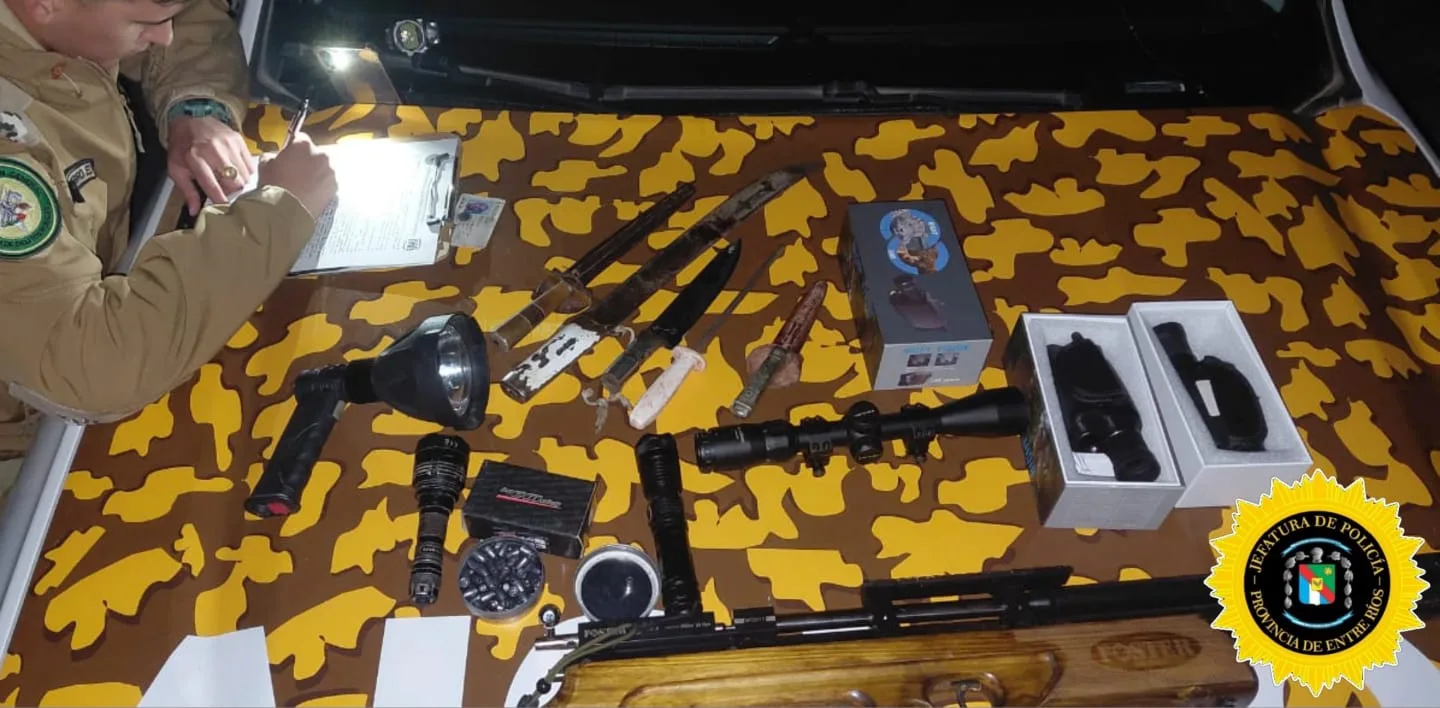 Poco después, los efectivos interceptaron a tres hombres mayores de edad, oriundos de la ciudad de Concordia, que salían del interior del campo. Se constató que eran los responsables de la faena ilegal. Fueron secuestrados varios elementos de caza, entre ellos: