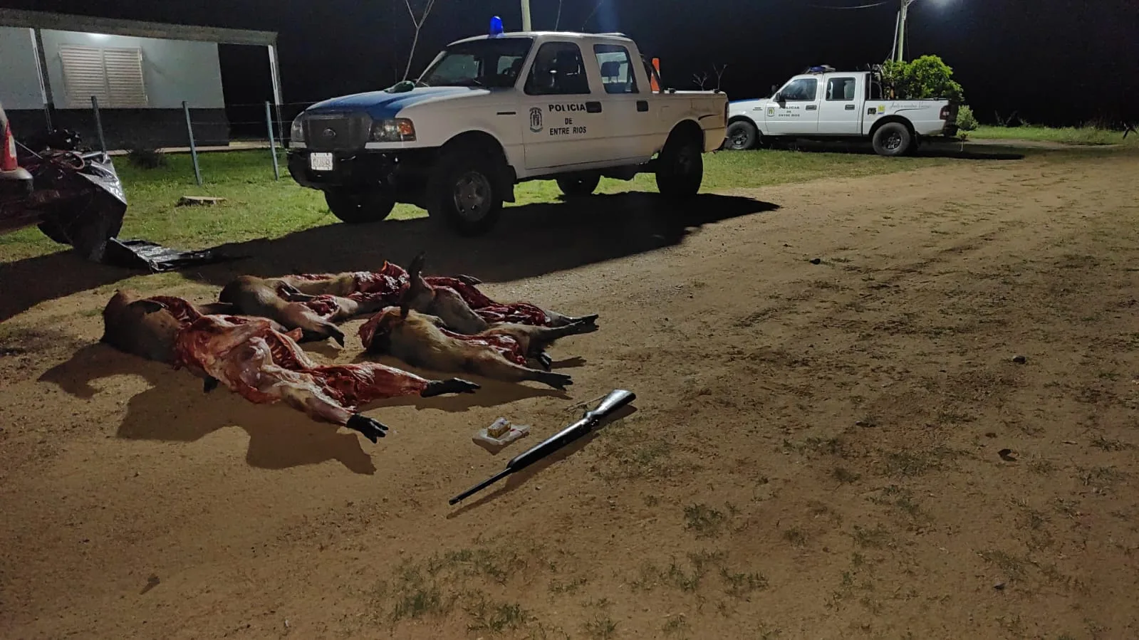 Ante la implementación y despliegue de operativos diagramados por el comando superior, en la fecha, a las 01:00 el móvil JP 931 de comisaría tatuti en intersección de Ruta Provincial N° 1 y acceso a la Colonia Santa María, Tatuti, detiene una Pick Up, que circulaba por la ruta mencionada con sentido de circulación de oeste – este, siendo esta Fiat Strada Adventure 1.6 tipo Pick Up doble cabina, conducido por un masculino de 33 años de edad, con domicilio en Barrio Tacuabé – Chajarí; acompañados por dos ciudadanos de 20 y 40 años, domiciliados en Barrio Tagüe, transportando en la caja seis carpinchos eviscerados entre ellos uno cuereado, producto de la caza ejercida en un campo de la zona del arroyo Tatuti, utilizando para dicha caza, un arma de fuego larga, que transportaban en el habitáculo del rodado, siendo un rifle a cerrojo cal .22, sin la documentación respaldatoria y una caja con proyectiles sin percutir, ante tales circunstancias se inicia legajo de oficio por supuesta infracción al artículo 189 bis del CP, procediendo en consecuencia al secuestro del arma de fuego y municiones en cuestión; persona esta que debidamente identificada en el lugar, queda supeditado al Legajo referenciado, con conocimiento de la fiscalía de instrucción local. Asimismo, se elevarán copias de lo actuado a la Brigada Abigeato Federación, para la prosecución ante la caza de la especie carpinchos conforme lo determina la Ley Provincial nro 4841/71.