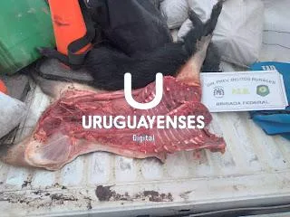 En el interior del vehículo se constata que trasportaban un arma calibre 9mm, 1 inflador de PCP 300 BAR-4500 PSP; 46 balines calibre 9mm; 4 cuchillos; 1 carpincho eviscerado; y 1 lechón de jabalí eviscerado.