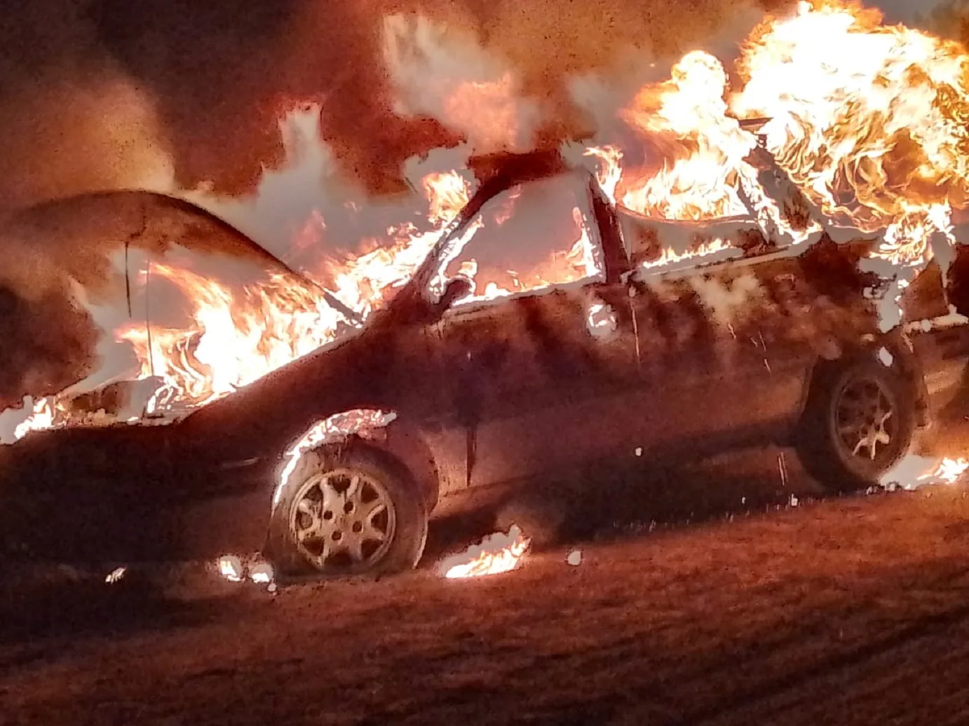 En la noche de este viernes, bomberos, son informados de un incendio de un vehículo en un camino vecinal que une Ceibas con Esquina a 8 km aproximadamente, sale móvil 25, camión cisterna al arribo de la dotación se encuentran con incendio generalizado, tratándose de un vehículo Marca Galloper Modelo Santamo rural, el conductor manifestó que empezó a salir fuego debajo del tablero, el mismo trato de extinguir foco ígneo usando un extintor.