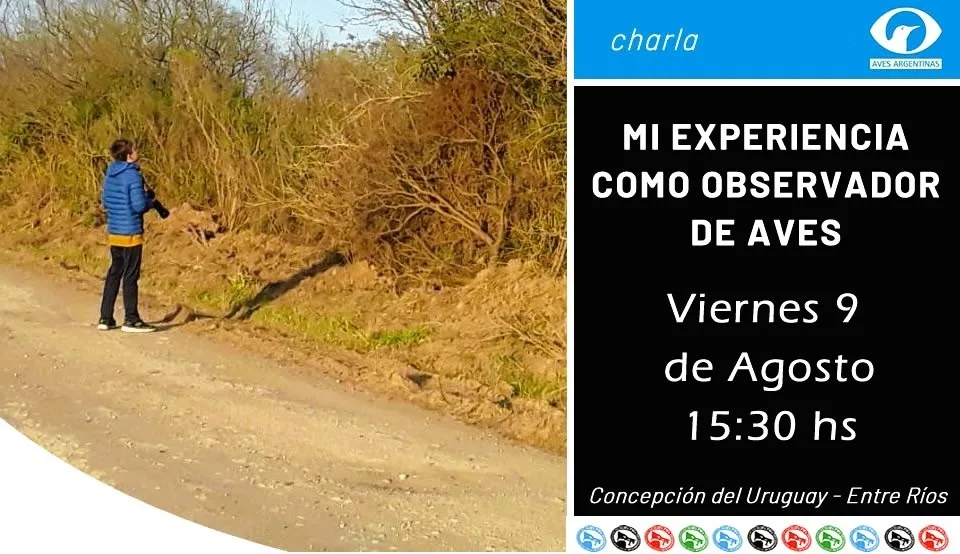 En esta oportunidad la charla estará a cargo de Felipe Aguilar, uno de los integrantes más jóvenes del COA e integrante de Pajareritos Argentinos, quién nos va a contar cómo nace su pasión por la observación de aves y muchas historias más, no sé lo pierdan, especialmente los más chicos.