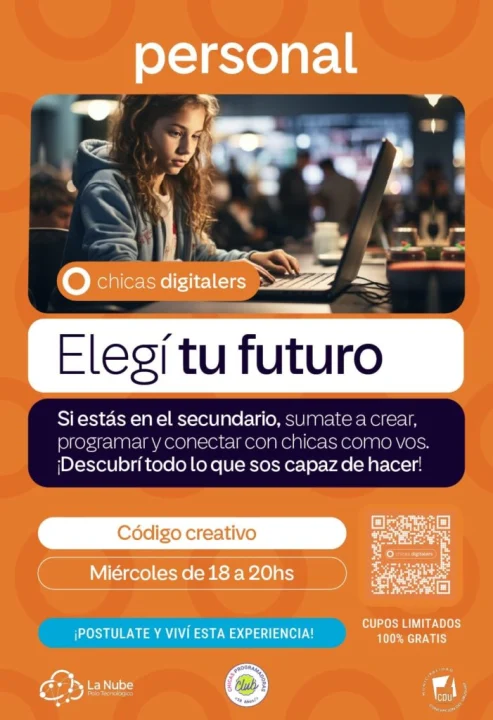 La Municipalidad de Concepción del Uruguay, en articulación con el Polo Tecnológico La Nube, informa que este viernes 17 de abril es el último día para poder inscribirse a la capacitación “Chicas Digitalers”, una propuesta de formación gratuita destinada a chicas de entre 12 y 18 años interesadas en dar sus primeros pasos en el mundo de la tecnología, la programación y la creación de proyectos digitales.