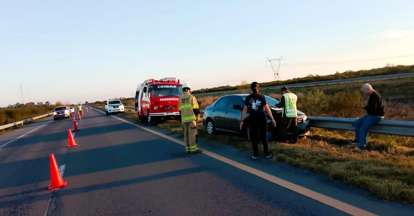 Personal del Hospital Eva Duarte de Ceibas se presentó en una ambulancia y evaluó al conductor del Toyota Corolla, determinando que no era necesario su traslado a un centro asistencial. El conductor permaneció en el lugar a la espera del auxilio para retirar su vehículo.