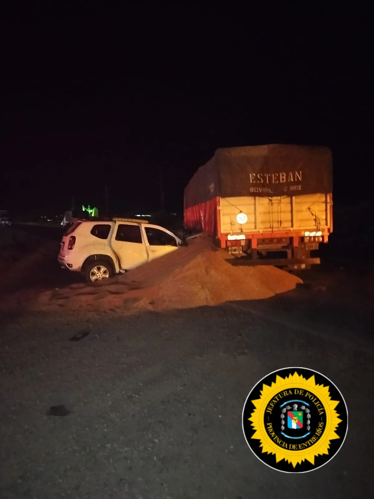 Según informaron fuentes policiales, personal de Comisaría Mojones Norte tomó conocimiento del accidente y se dirigió al lugar, donde constató la colisión entre una camioneta Renault Duster y un camión Mercedes Benz con acoplado cargado con trigo.