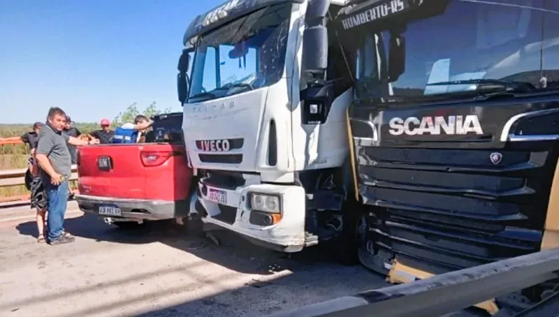 En el siniestro intervino una camioneta Fiat Oroch, de color rojo, y dos camiones de gran porte, uno Ivecco y otro Scania. Por detrás, un tercer camión chocó por alcance a los siniestrados. Por las imágenes, circulaban a baja velocidad.