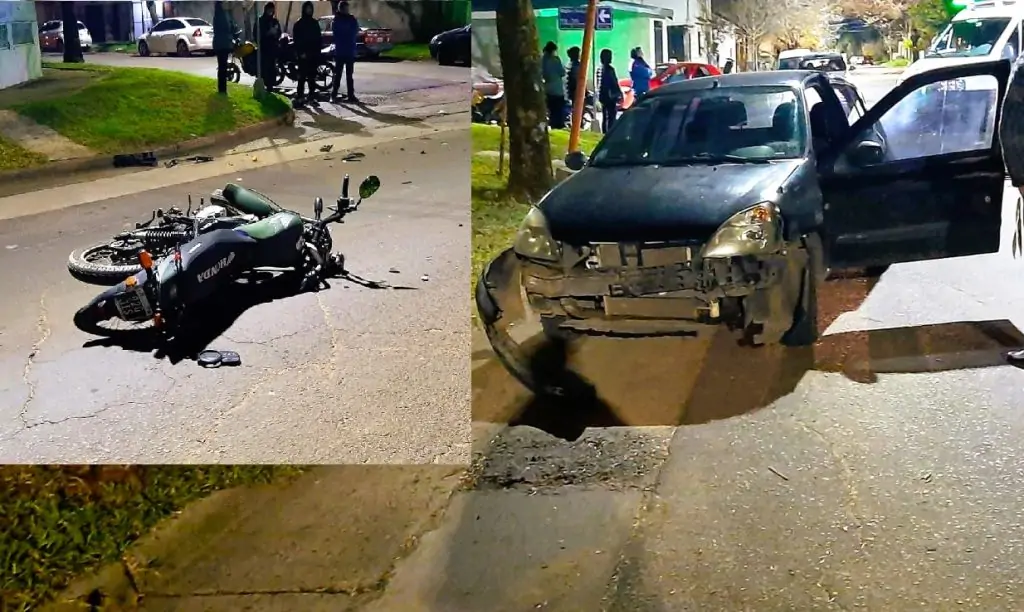 El informe policial enviado a esta redacción, siendo las 19:25 horas, se produjo un accidente vehicular en la intersección de las calles Santa Teresita y Martín Reibel. El siniestro involucró a un automóvil Renault Clio y una motocicleta Honda CB1.