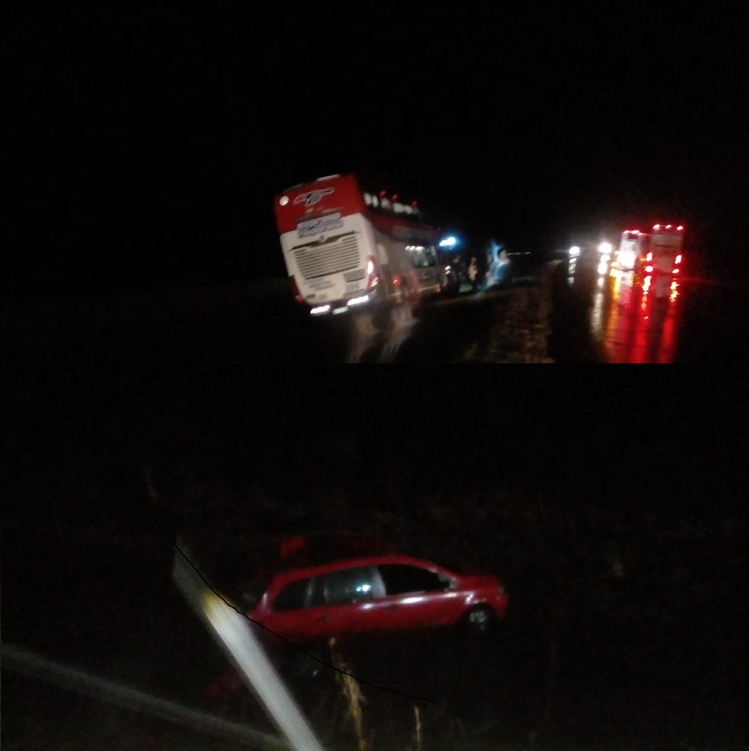 El transporte de pasajeros viajaba desde Retiro con destino a Asunción y trasladaba 61 personas: 55 adultos, 4 menores y 2 tripulantes. Tras el impacto, el ómnibus cruzó hacia el cantero central, donde finalizó su recorrido, mientras que el automóvil quedó detenido sobre la banquina este, con visibles daños en su estructura frontal.