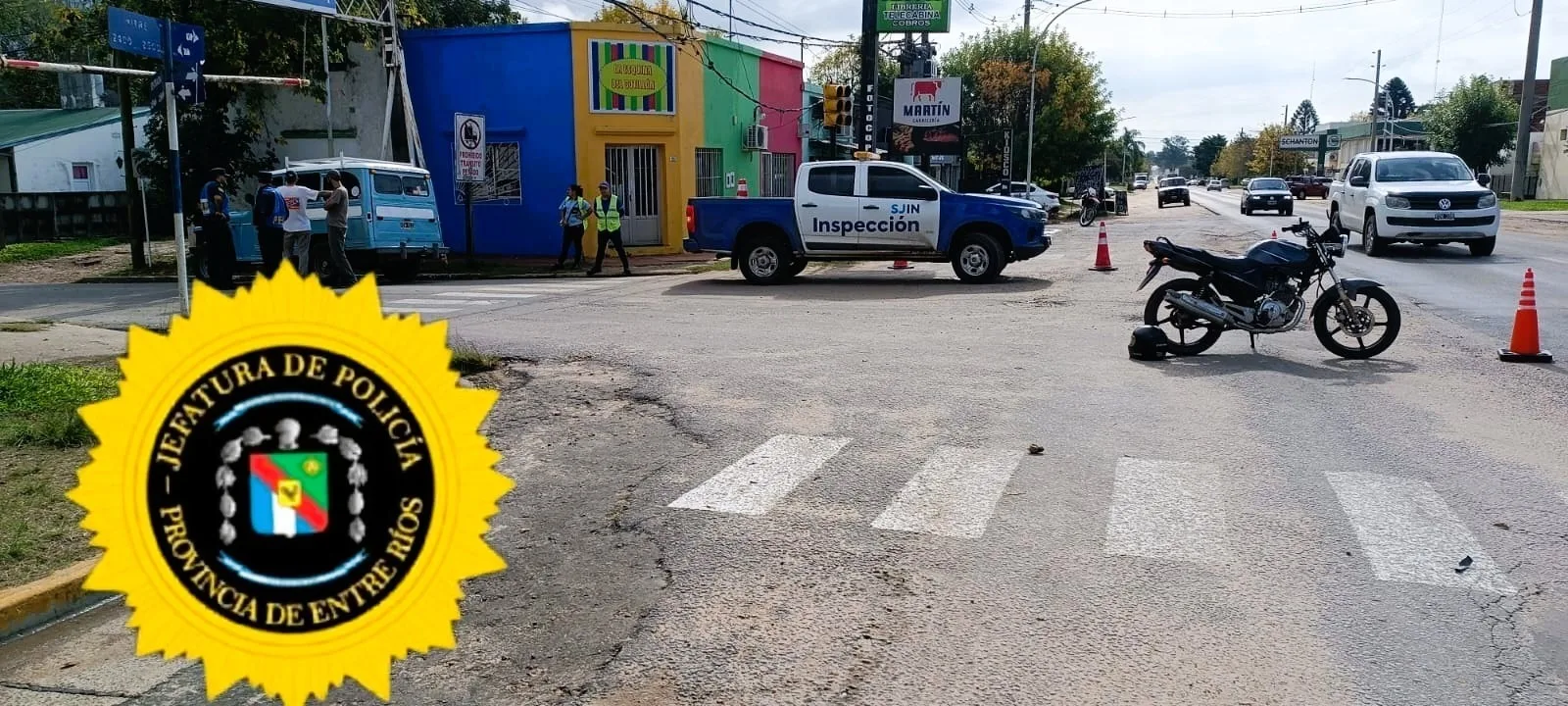 En la tarde de hoy, un accidente de tránsito se produjo en Avenida Mitre y Estrada en la localidad de San José. El suceso involucró a un vehículo marca Jeep, modelo IKA, de color celeste, conducido por un hombre de 51 años, y un motovehículo marca Yamaha, modelo YBR, guiado por un individuo de 42 años.