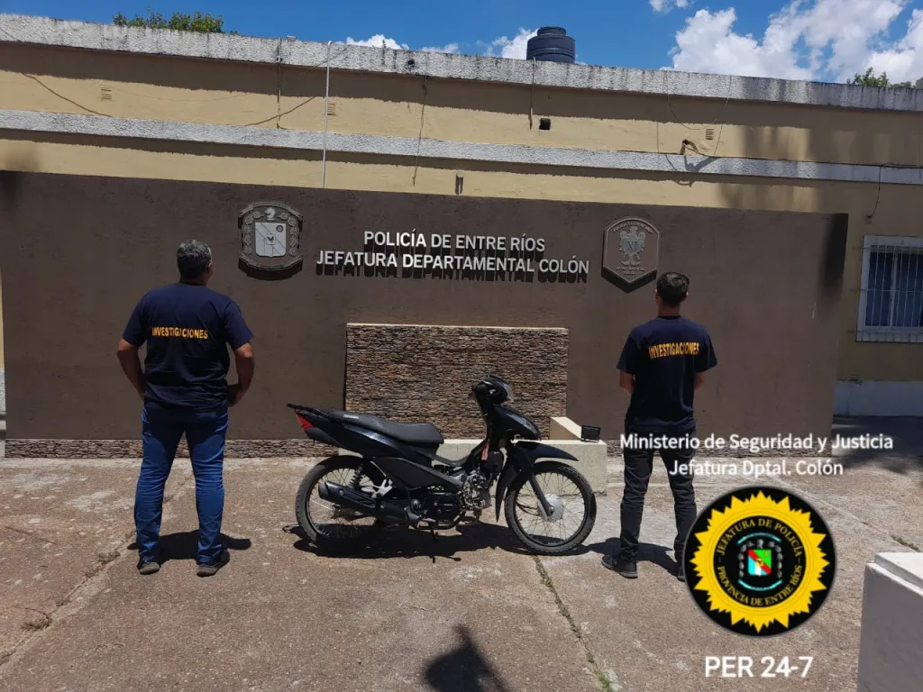 El operativo, que continuó las minuciosas labores de inteligencia, permitió localizar un motovehículo de marca Honda, modelo Wave, en las cercanías de las calles Bolívar e Illia, en Colón. Tras la identificación de la moto como parte del ilícito en cuestión, se procedió a su secuestro, bajo la autorización de la magistratura interviniente.