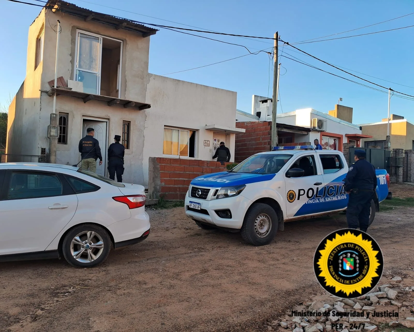 En un operativo realizado en el barrio San Francisco, personal de la Jefatura Departamental de Colón llevó a cabo un allanamiento en cumplimiento de un mandamiento judicial en el marco de una investigación en curso. Durante la intervención, se incautaron numerosos objetos que se sospecha están relacionados con actividades delictivas, incluyendo cinco teléfonos celulares, un tanque de 500 litros, estribos de hierro y varias aberturas.