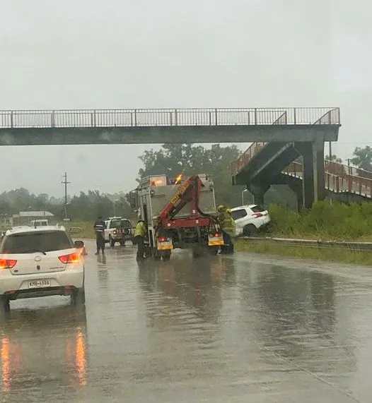 Durante la mañana de hoy y con la intensa lluvia de este martes, se registró un siniestro vial en la Autovía Artigas, altura km 146.